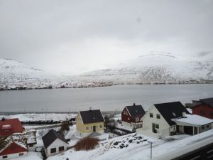 We have been in the Faroes now for a few weeks and are staying until 19th January when we start the journey back to Motherwell. It was great to be able to spend Christmas and New Year with Dorit’s family. Simon has been working on his masters, finishing one essay last week with the main dissertation still to come. The essay was more difficult than it needed to be as he left all the notes he had made for it back in Denmark! He wasn’t happy when he realised this. There are, though, worse places to have to spend time studying. There is a marvellous view (see above) from the desk – at least when it isn’t blotted out by fog or snow storms. The latter have been a bit of a feature of our time here so far.